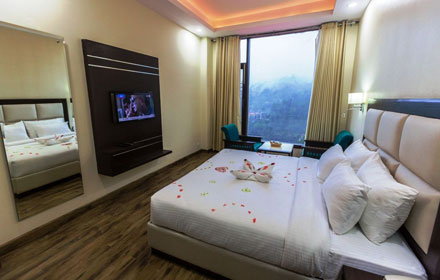 Snow Valley Resorts introduces itself as one of the biggest Centrally Air conditioned Hotel of Shimla having 72 rooms, with all modern facilities and surrounded by panoramic view of the majestic mountains, age old pine trees and overlooking the town of Shimla. The hotel offers unique blend of fine hospitality and unparalleled services. Relax in this elegant luxury mountainside hotel that bask in the daytime sunshine creating a warm and welcoming retreat. Snow Valley Resorts is located in one of the prime locations of Shimla on NH-22 at Ghora Chowki. Surrounded by peaceful green pine woods, we make one of the top holiday accommodations in Shimla region. The tasteful accommodation has local design touches with rich colors, wooden floors ,plush furnishings and optional stunning views.